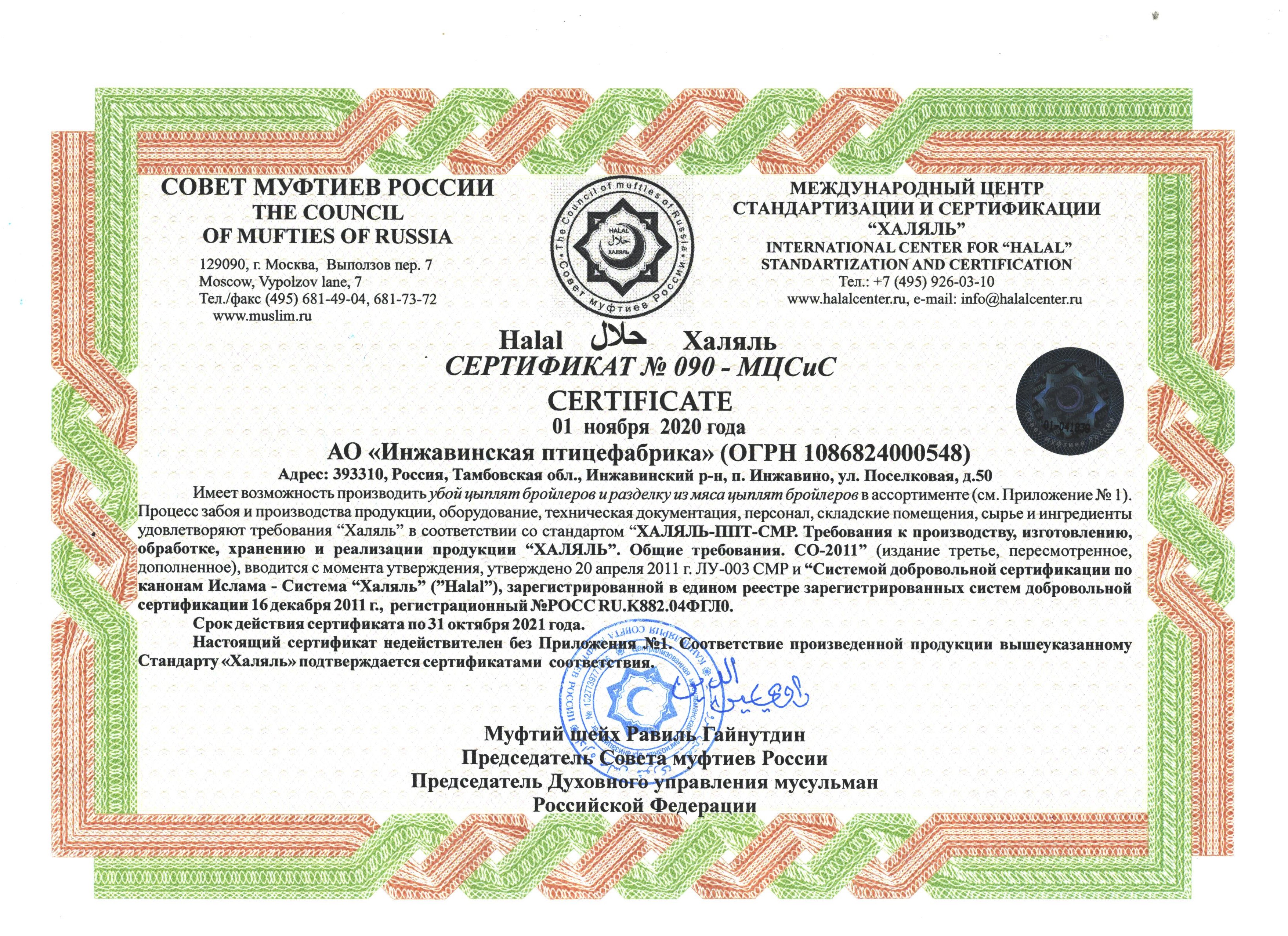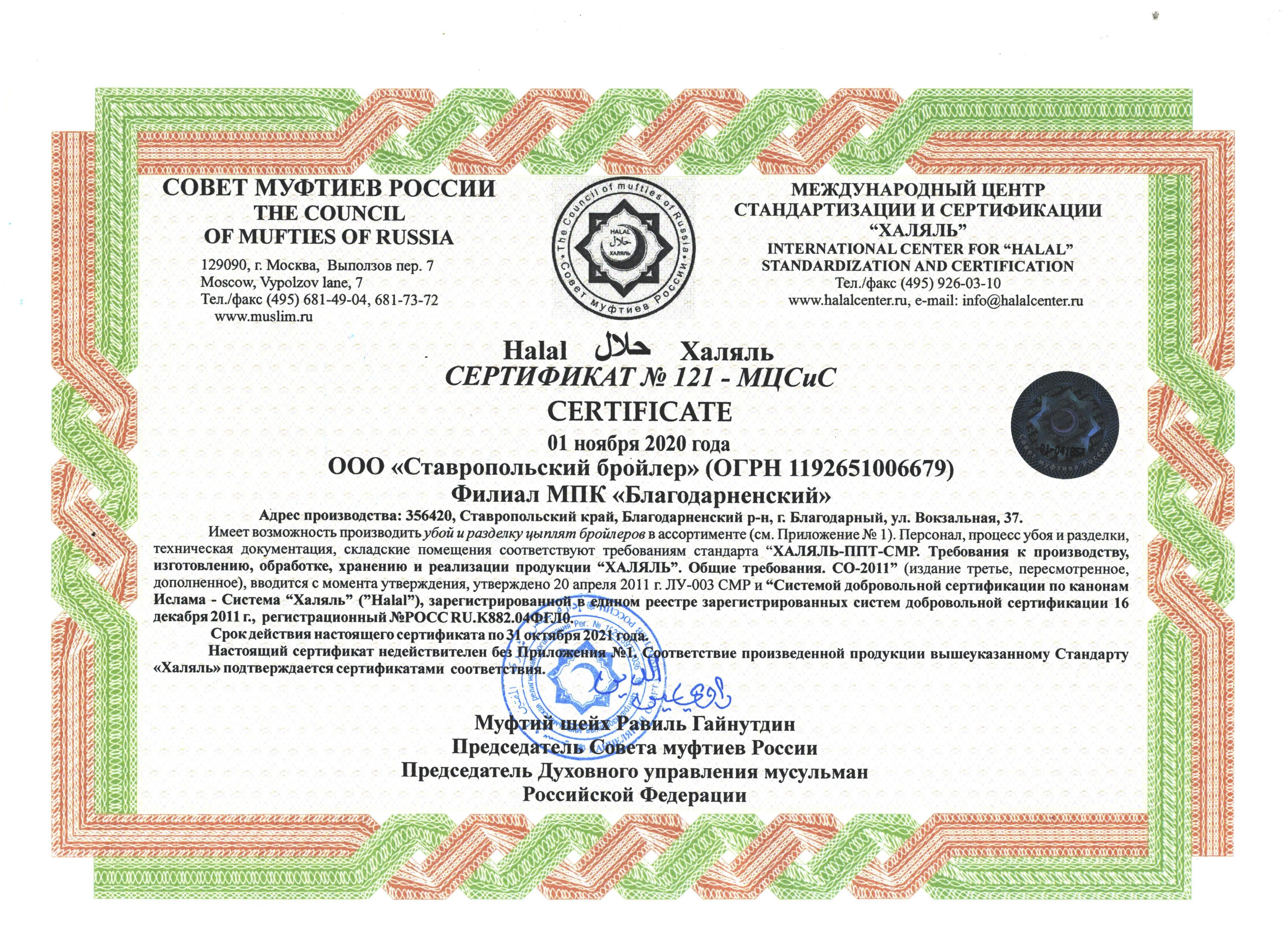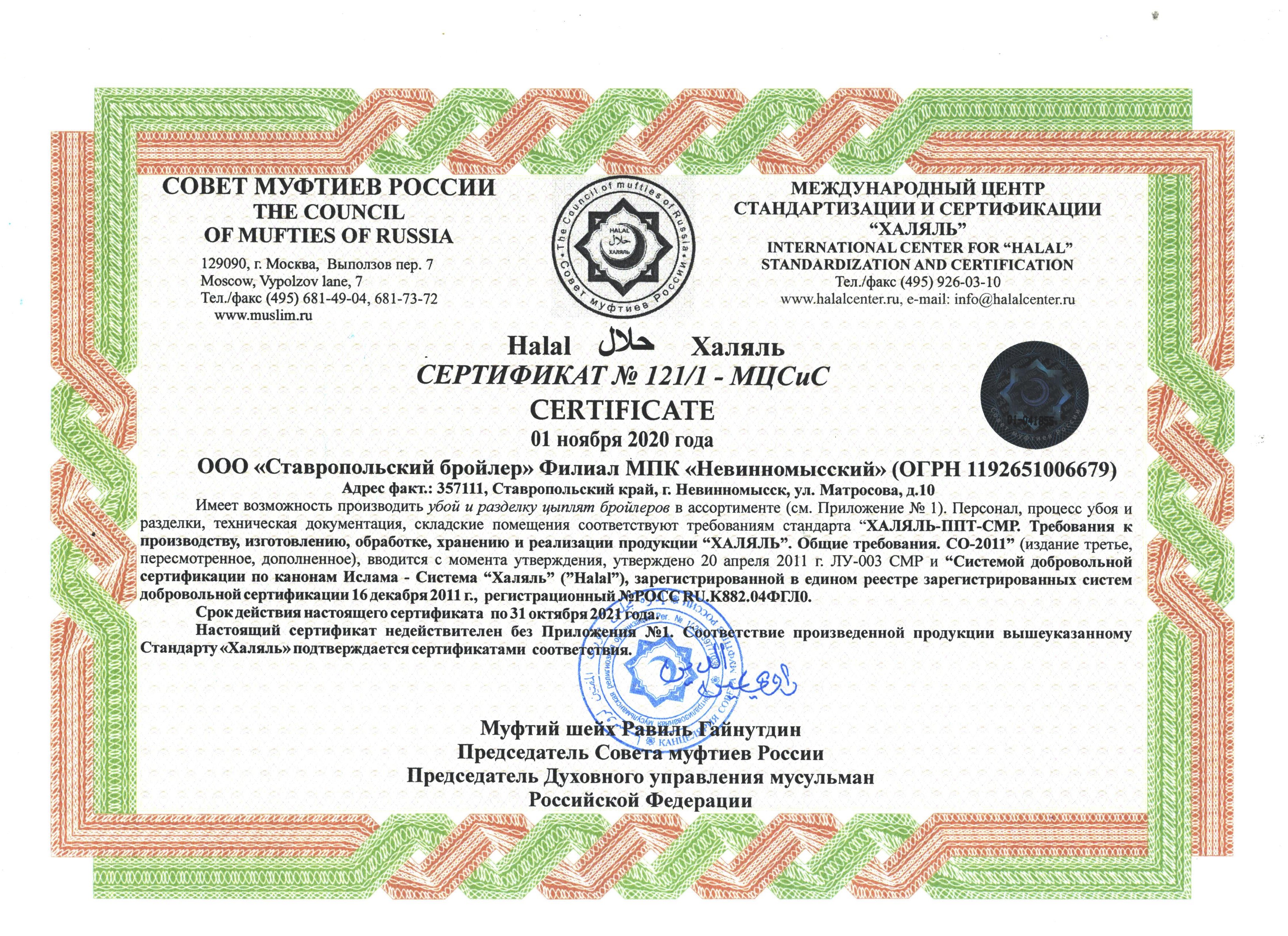 Ежегодно наши перерабатывающие комбинаты проходят процедуру сертификации на соответствие требованиям стандарта «Халяль».